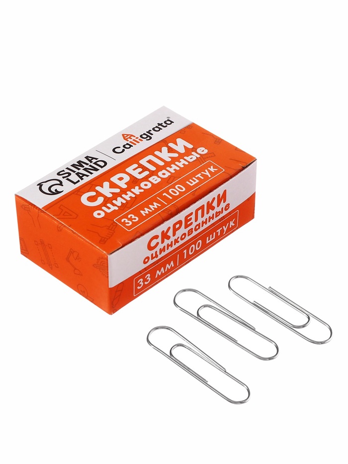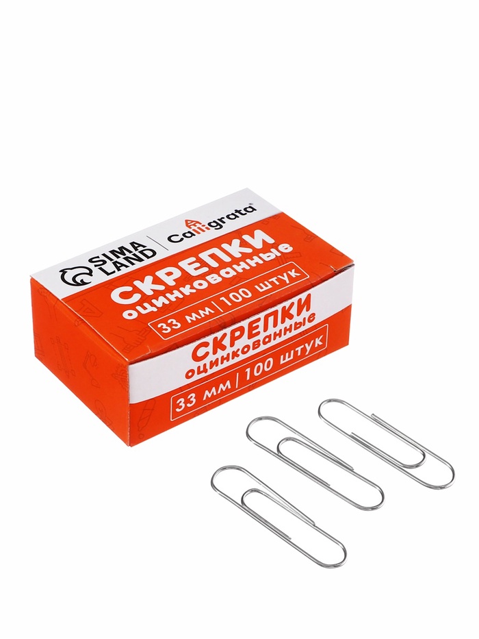 Скрепки 33 мм оцинкованнные в картонной коробке 100 штук