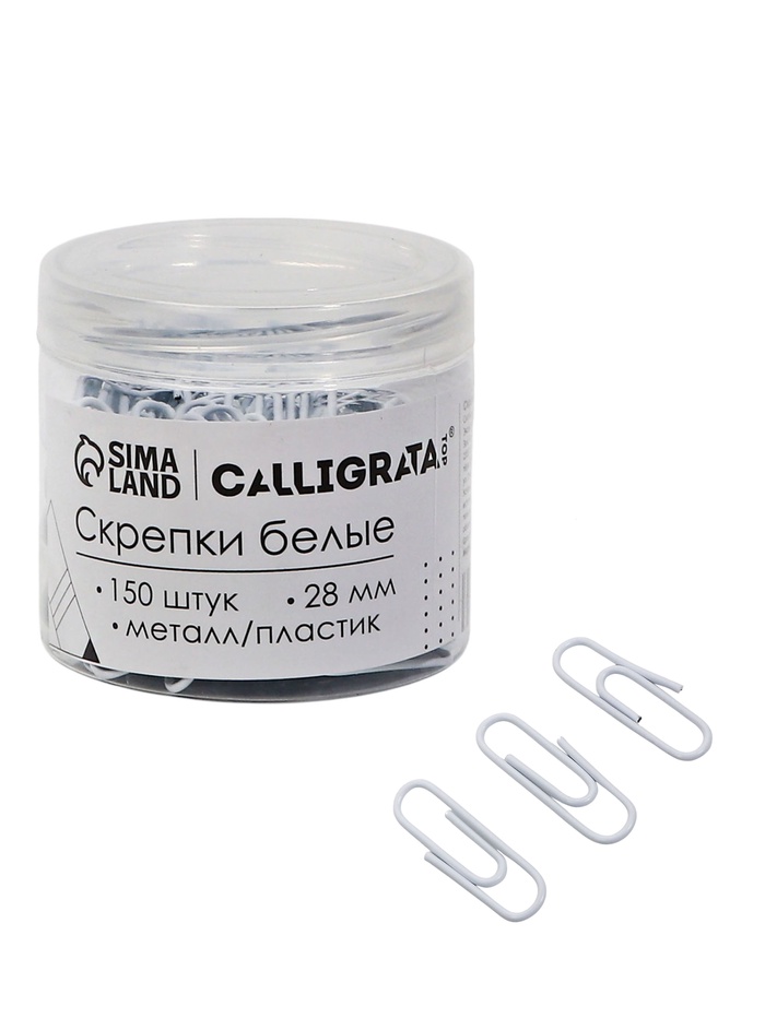Скрепки 28 мм белые в пластиковой тубе 150 штук, TOP Calligrata