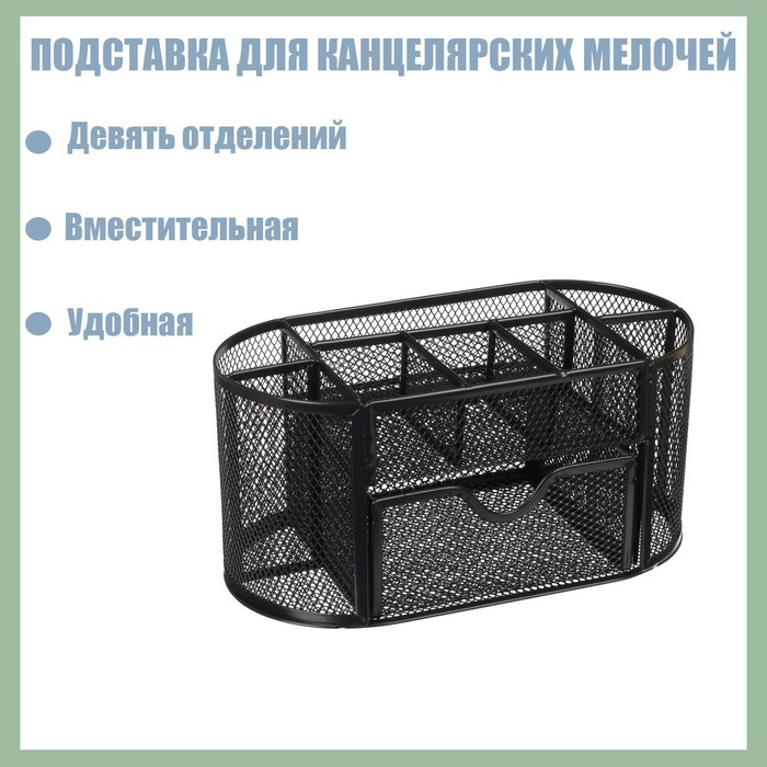 Подставка для канцелярских мелочей 9 отделений, сетка металл, чёрная
