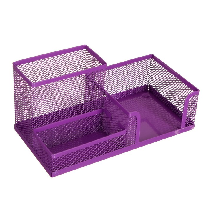 Подставка для канцелярских мелочей 3 отделения, сетка металл, фиолетовая