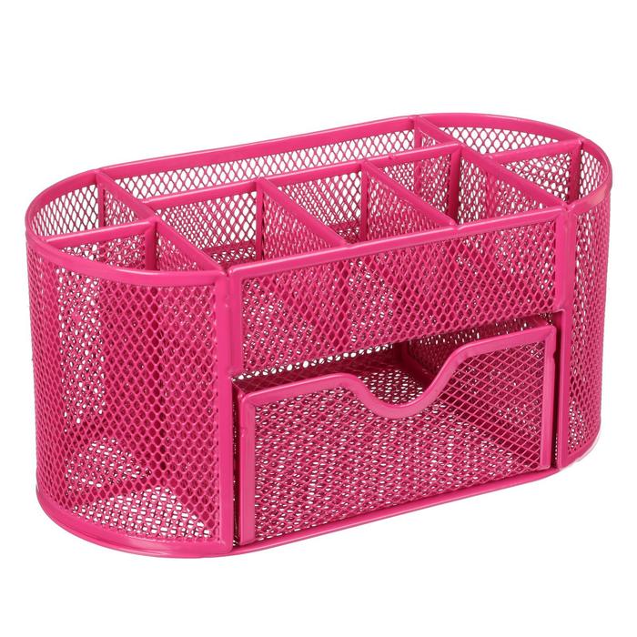 Подставка для канцелярских мелочей 9 отделений, сетка металл, розовая