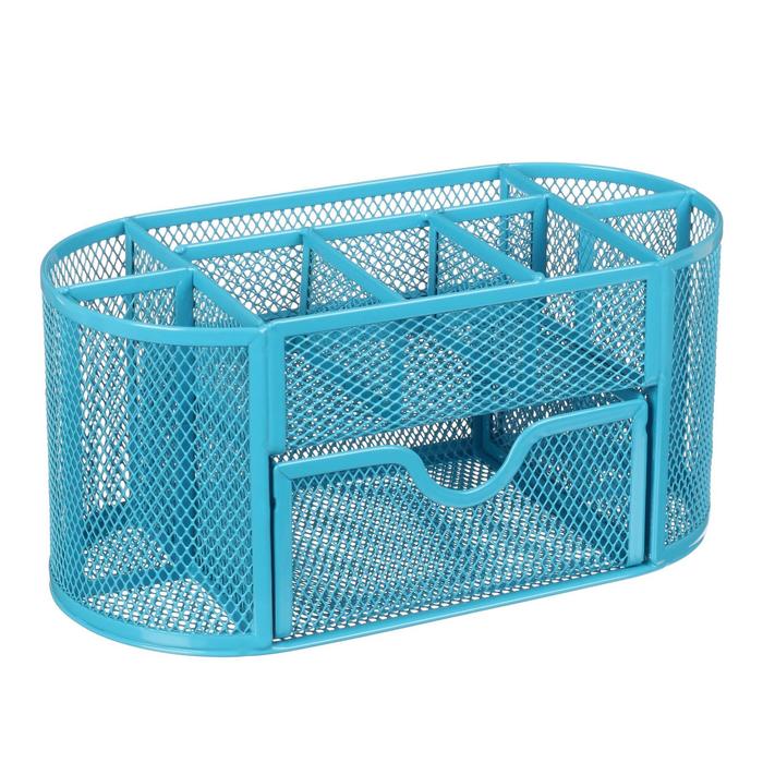Подставка для канцелярских мелочей 9 отделений, сетка металл, голубая