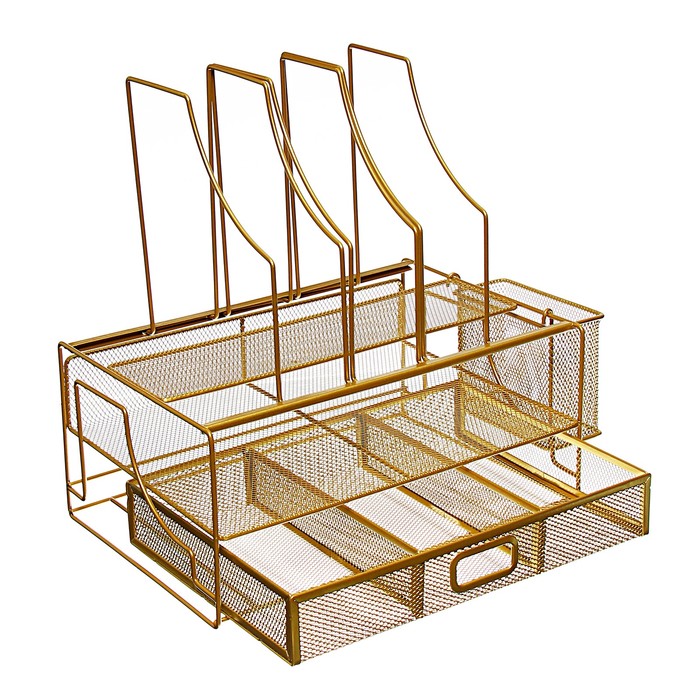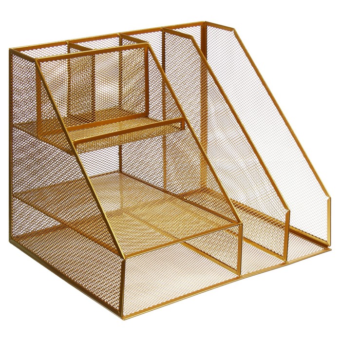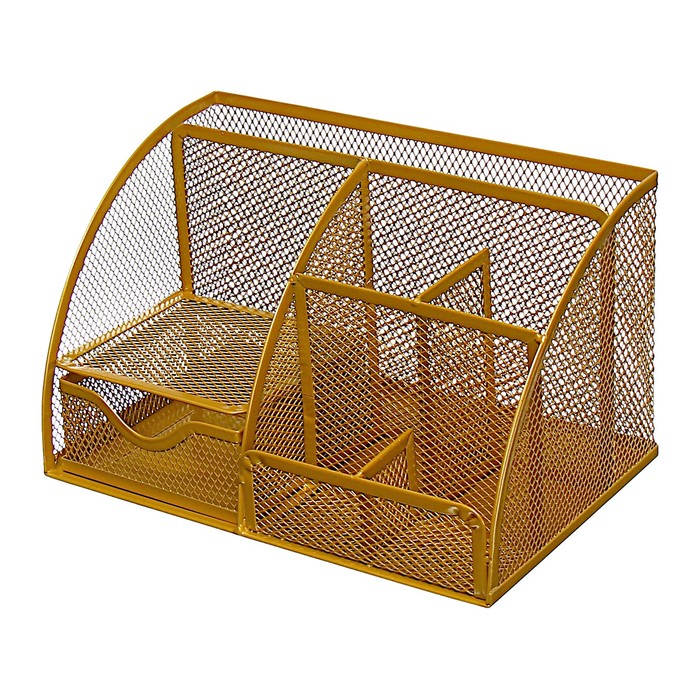 Подставка для канцелярских принадлежностей, 7 отделений, сетка, металл, золотой