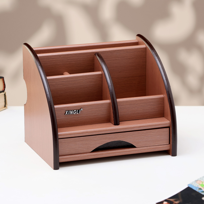 Органайзер 5 секций, 1 выдвижной ящик, серия Ясень шимо, 20×16.5×15.5 см, МИКС