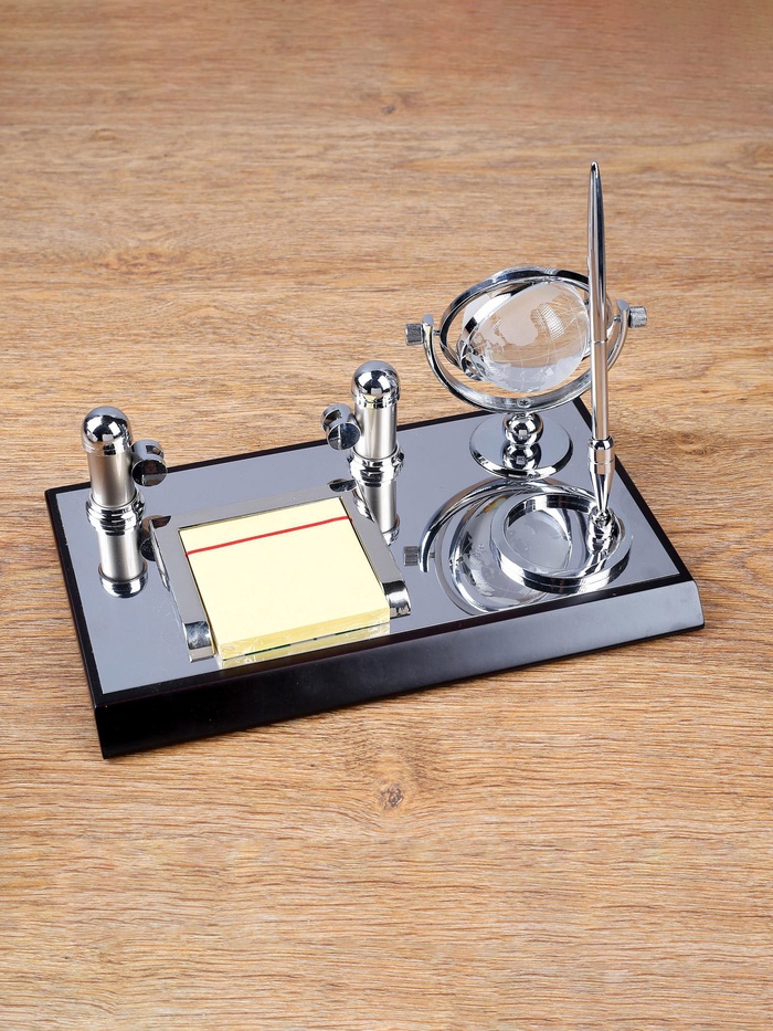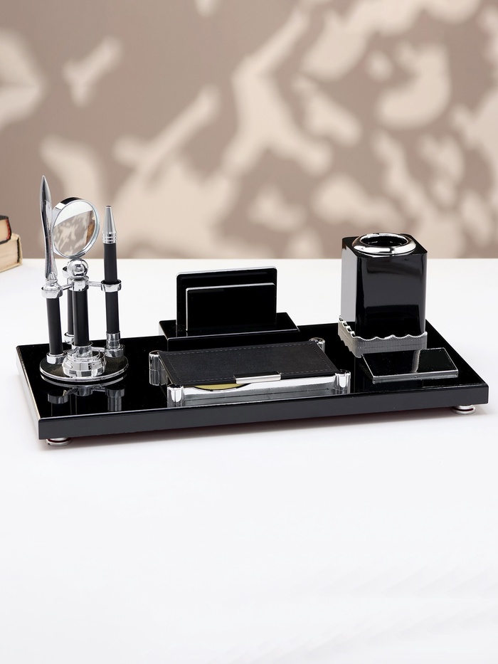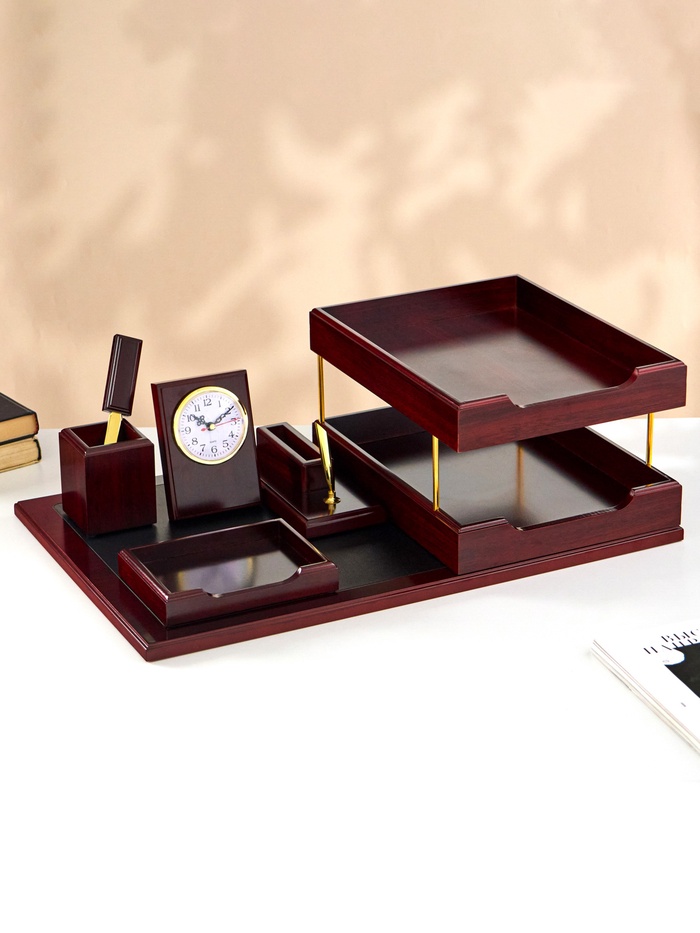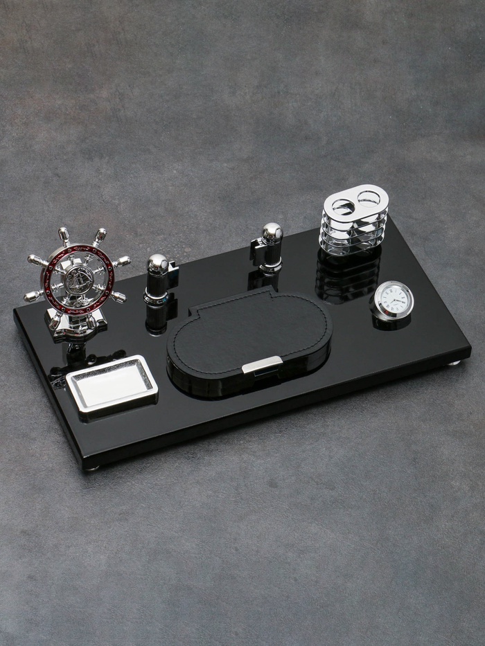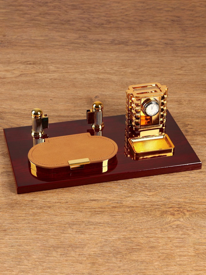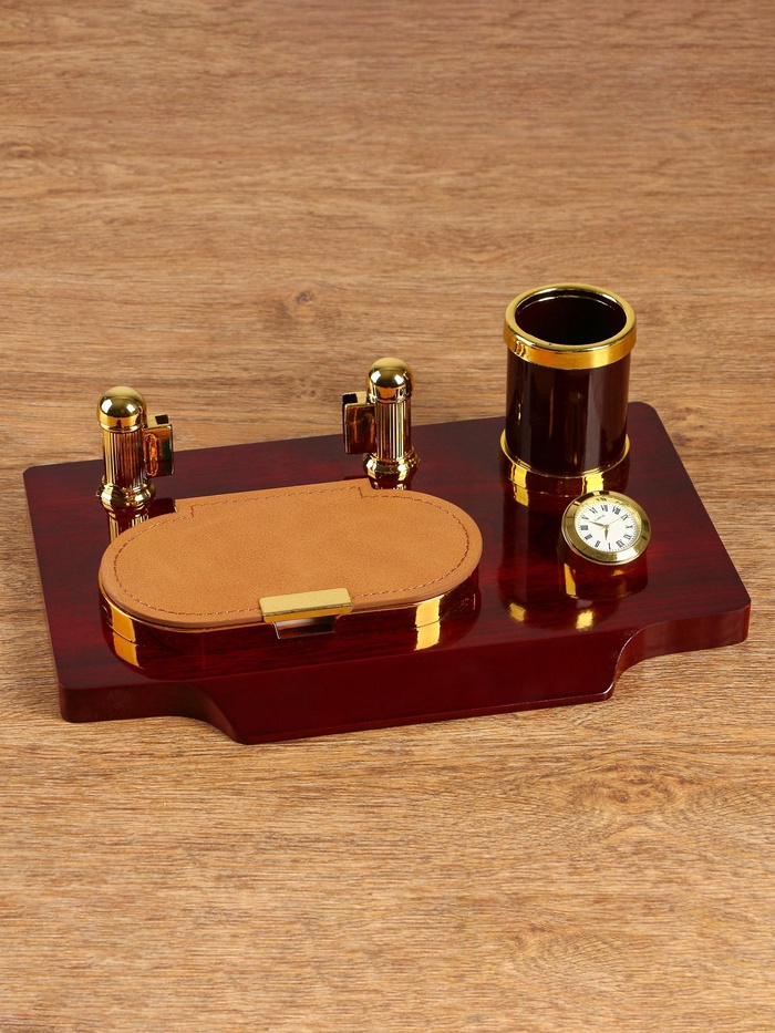 Набор настольный органайзер 34×24×18 см, 5 предметов, с часами