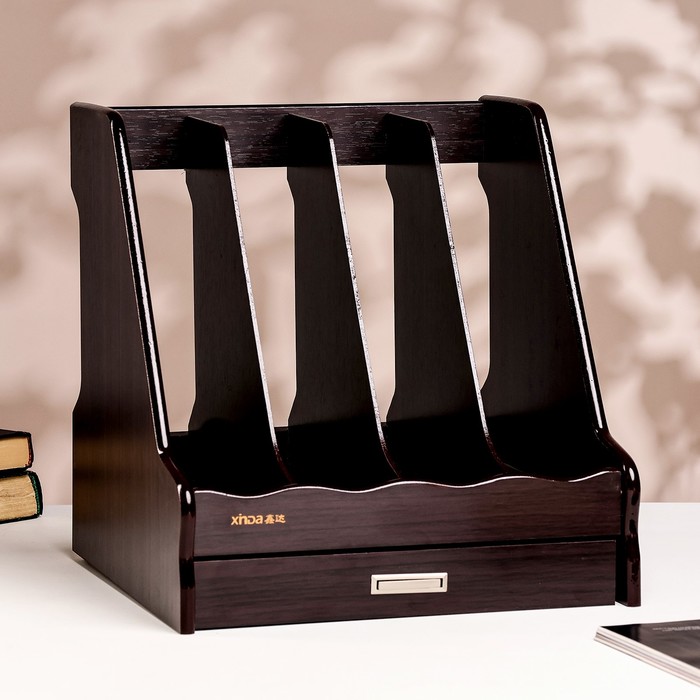 Органайзер 5 секций, 1 выдвижной ящик, серия Ясень шимо темный с кантом темным, 16×20.5