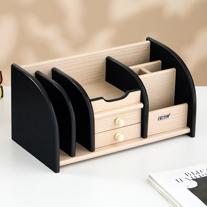 Органайзер для бумаги, 6 секций, с выдвижным ящиком, 30×28×30 см, МИКС