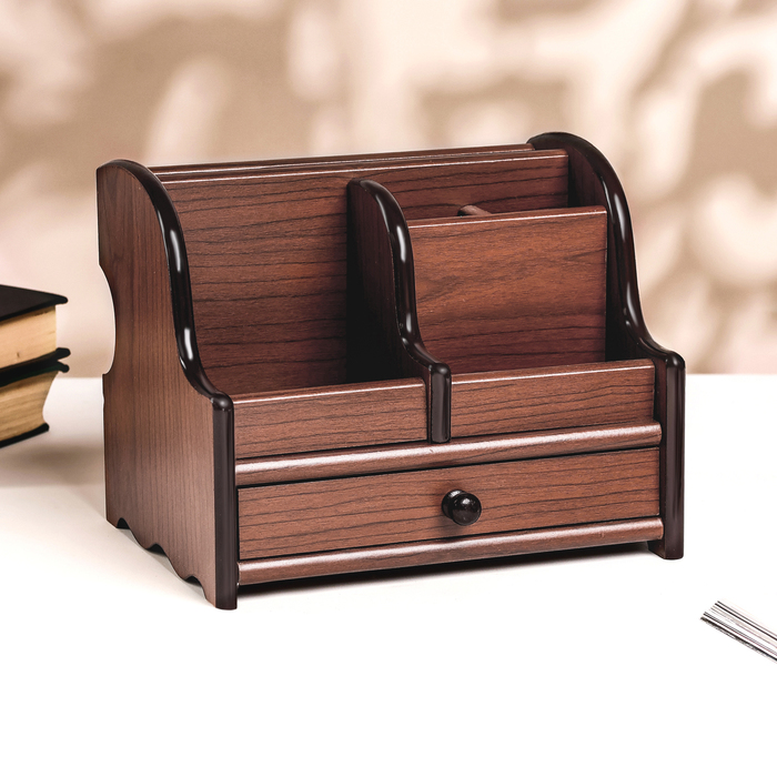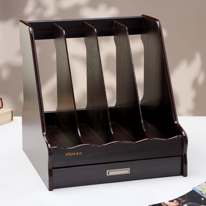 Органайзер для бумаги вертикальный, 3 секции, с выдвижным ящиком, 26×26×24 см