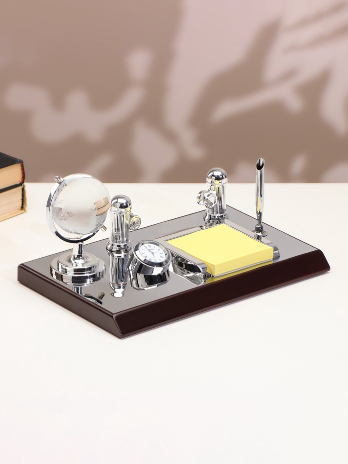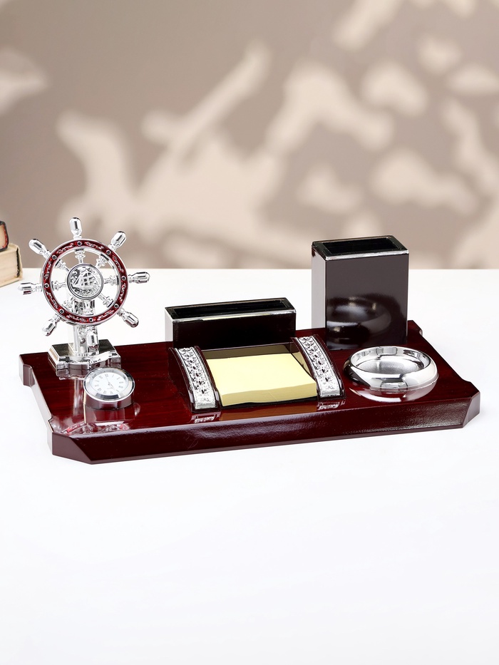 Набор настольный 7в1 (каранд-ца с часами, визитн, глобус, подст, кальк, подст д/мелочей)