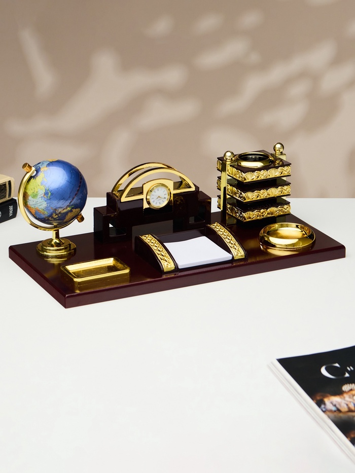 Набор настольный 6в1 (блок д/бумаг, подст. д/печати, карандашница, часы, визитница,глобус)
