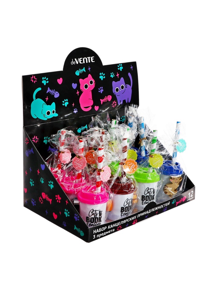Канцелярский набор deVENTE. Funny Cat, 3 предмета, ластик, точилка, чернографитный карандаш HB