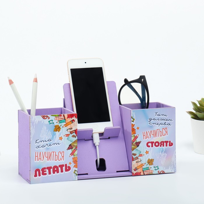 Органайзер для канцелярии с подставкой под телефон «Кто хочет научиться летать», 23×7×14 см
