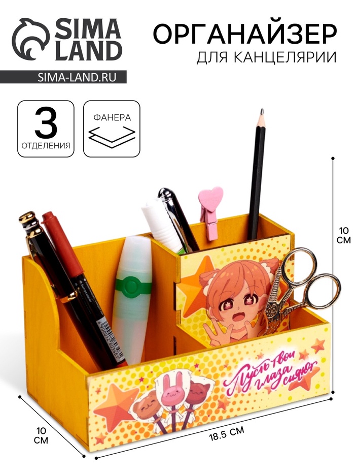 Органайзер для канцелярии «Пусть твои глаза сияют!» 3 отделения, 18.5×10×10 см