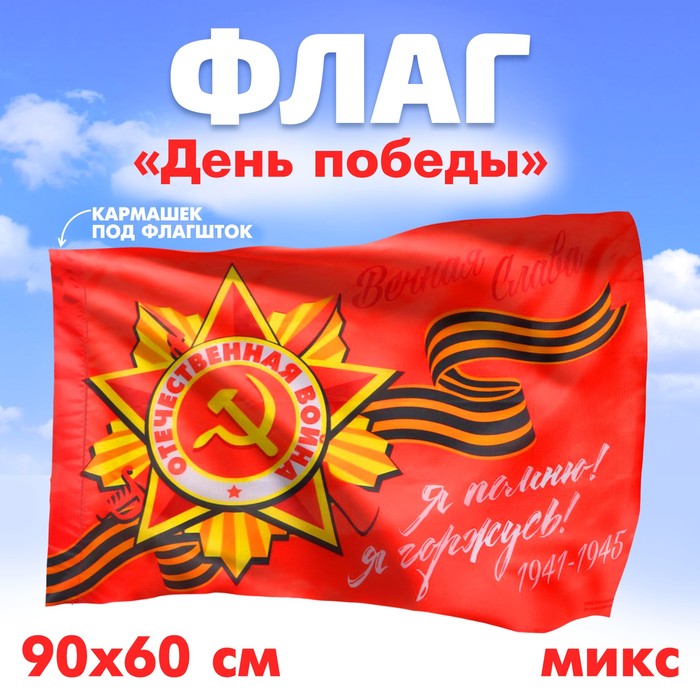 Флаг на 9 мая «Победа», 90×60 см, МИКС
