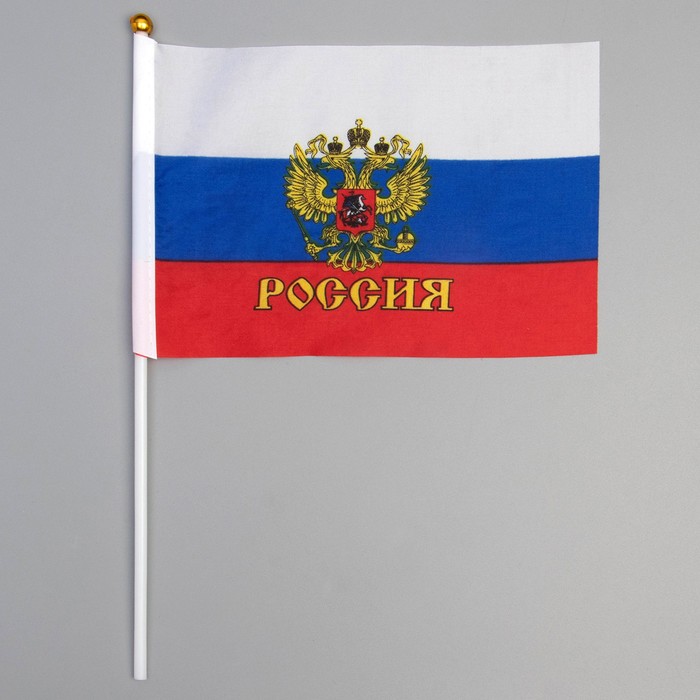 Флаг России «Герб», 14×21 см, шток 30 см, полиэфирный шелк