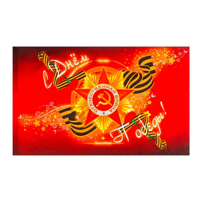 Флаг 9 Мая «С Днем Победы», 90×145 см, полиэфирный шелк, без древка