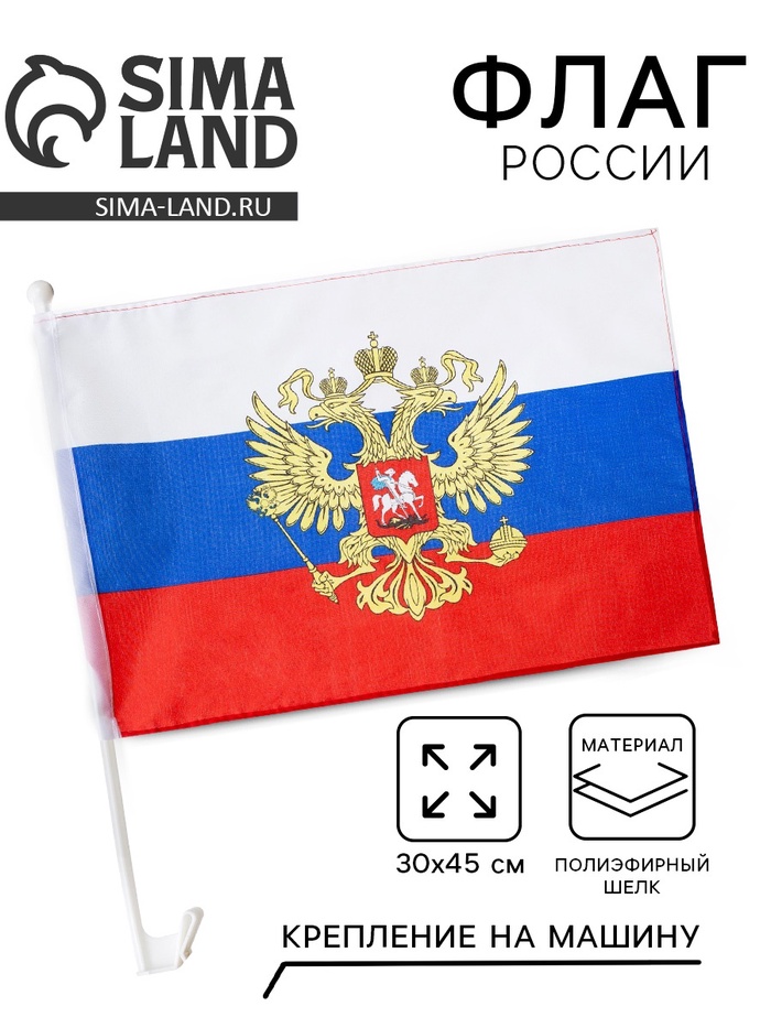 Флаг России с гербом, 30×45 см, полиэфирный шёлк, с креплением на машину
