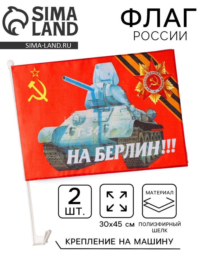 Флаг 9 Мая «На Берлин», 30×45 см, полиэфирный шёлк, с креплением на машину, набор 2 шт.
