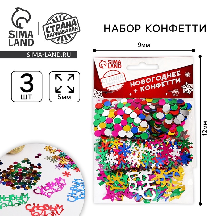 Конфетти «С Новым годом», снежинка, набор 3 шт