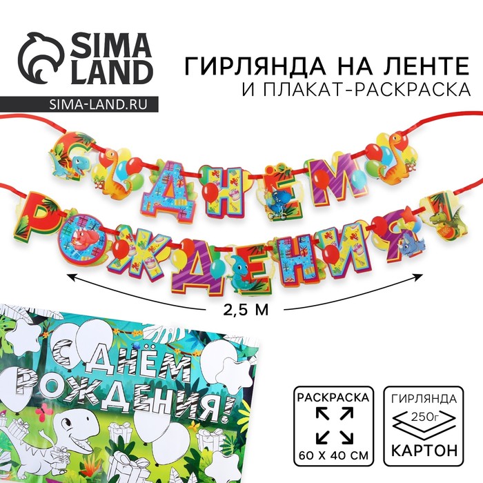 Гирлянда на ленте и плакат-раскраска «С днем рождения»