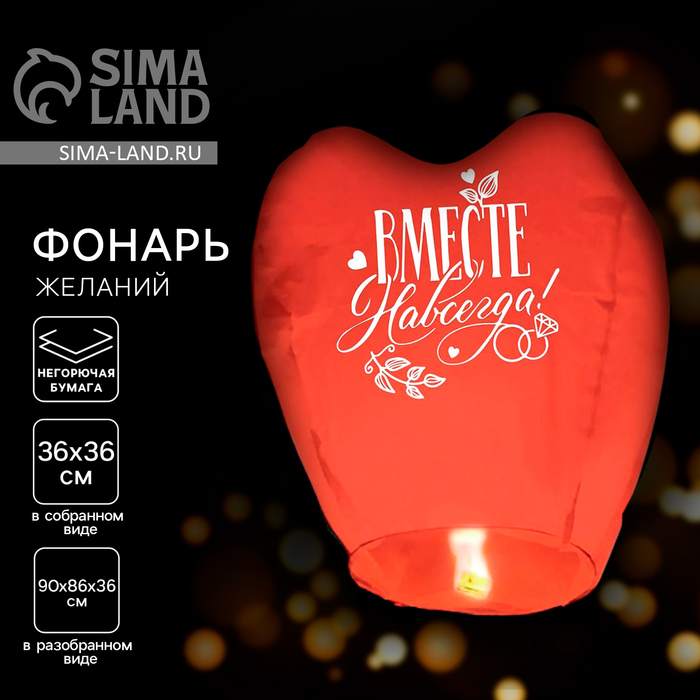 Небесный фонарик «Вместе навсегда», сердце, красный