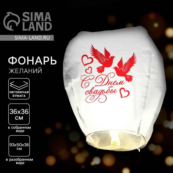 Небесный фонарик «С днём свадьбы», купол, белый