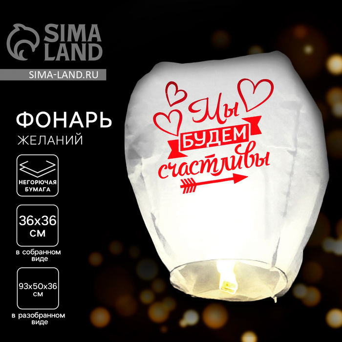 Небесный фонарик «Мы будем счастливы», купол, МИКС