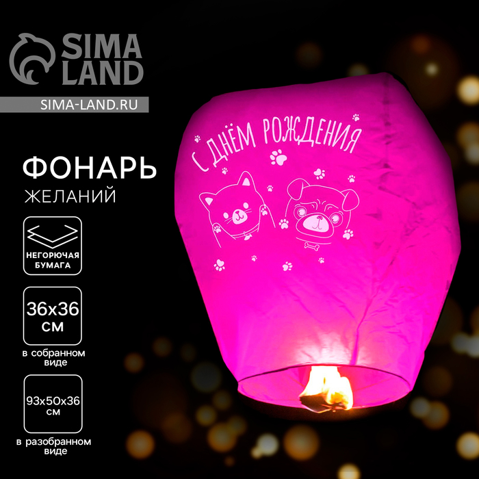 Небесный фонарик «С днём рождения» купол, фуксия