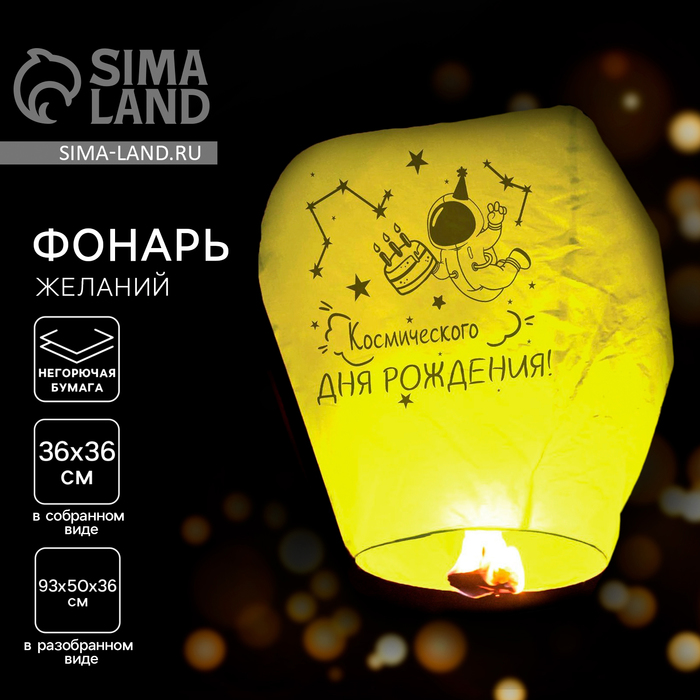 Небесный фонарик «Космического дня рождения», купол, жёлтый