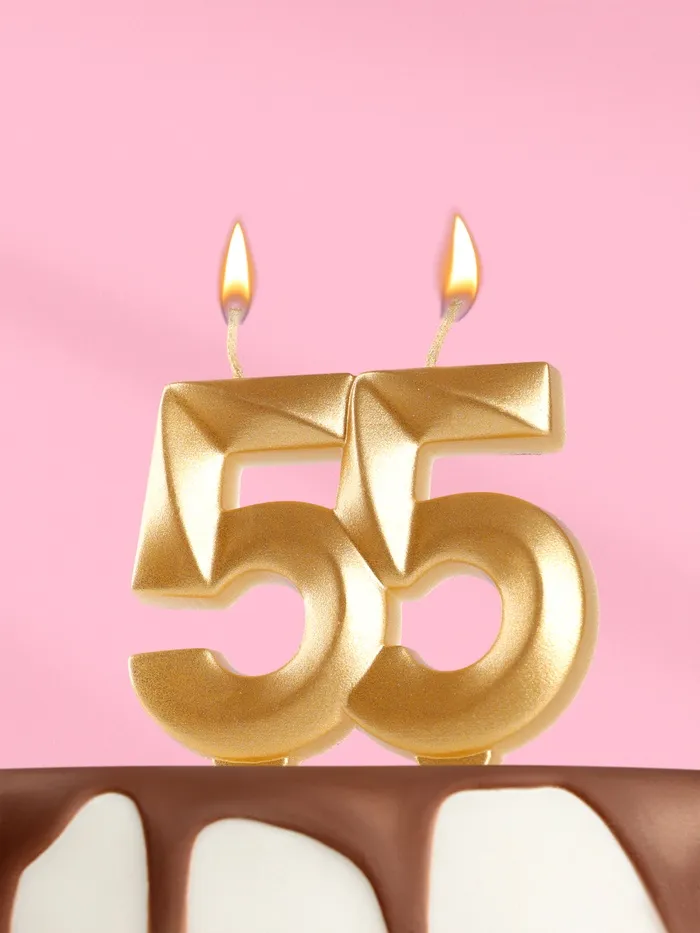 Свеча в торт юбилейная «Грань», цифра 55, золотой металлик, 6.5 см
