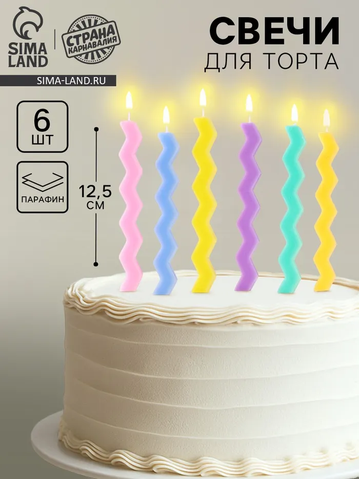 Свечи для торта «Зигзаг», 6 шт., разноцветные