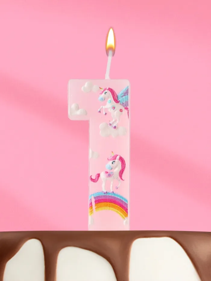 Свеча в торт «Волшебные единороги», цифра 1, розовый, 9 см