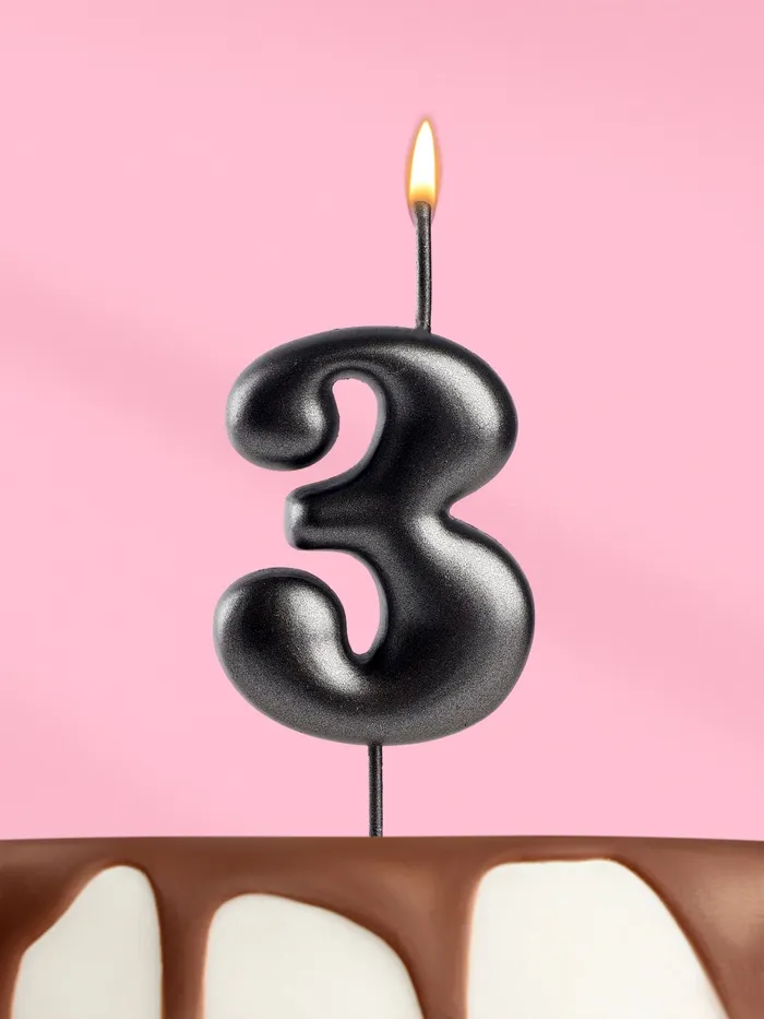 Свеча для торта цифра 3,космос, 5.5 см, 16 мин