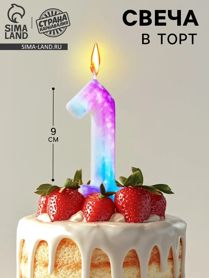 Свеча в торт на шпажке «Галактика», цифра 1, 9 см, ГИГАНТ