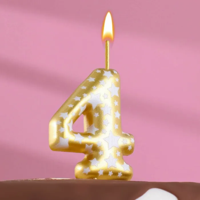 Свеча для торта «Золотая со звездами», цифра 4, 5.5 см