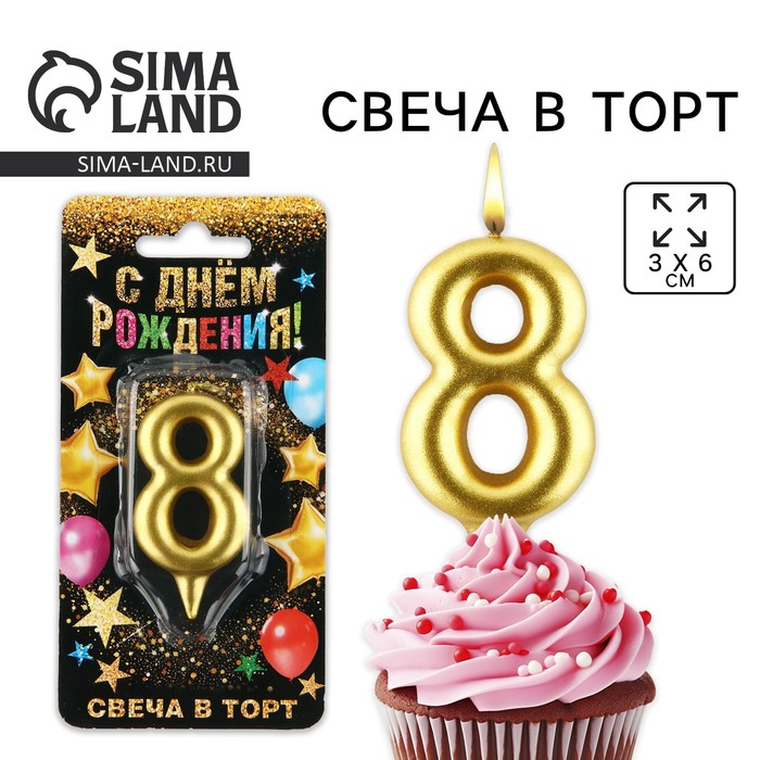 Свеча для торта, цифра «8», золото, 3 х 6 см