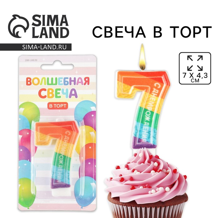 Свеча для торта, цифра 7 «С Днем рождения», 7 х 4,3 см