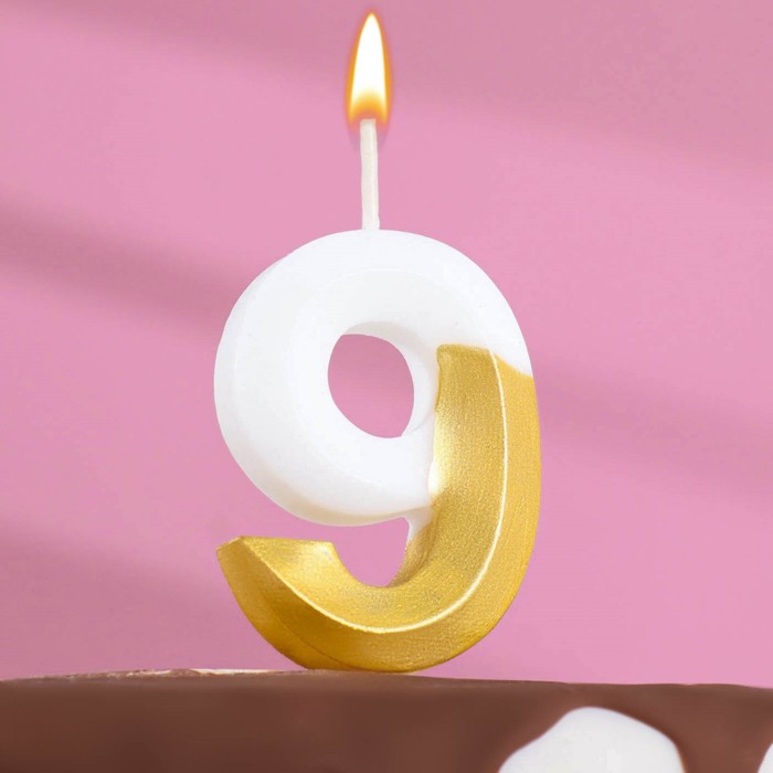 Свеча для торта на шпажке «Грань», цифра 9, 5.5 см, бело-золотая