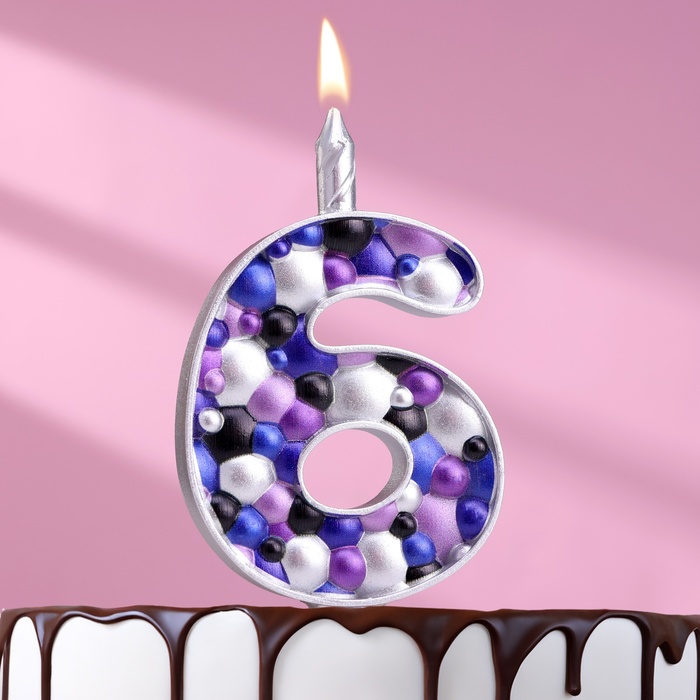 Свеча для торта «Пузырьки», цифра 6, 10 см, серебро