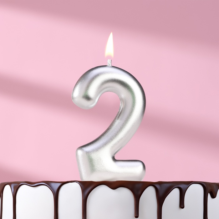Свеча в торт «Европейская», цифра 2, 6 см, серебро