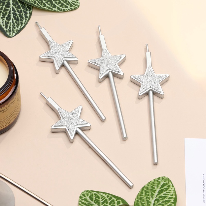 Свечи для торта 4 шт. «Блестящие звезды», серебряные