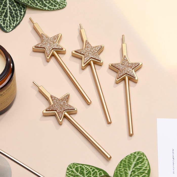 Свечи для торта 4 шт. «Блестящие звезды», шампань
