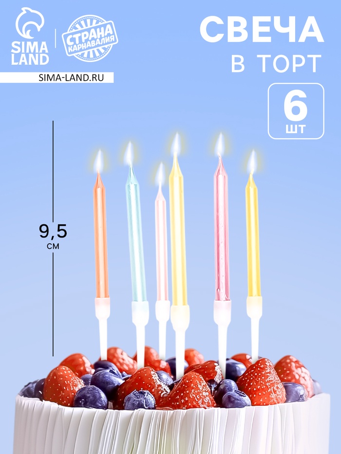 Свечи для торта «Пати» 9.5 см, с ножкой 14 см