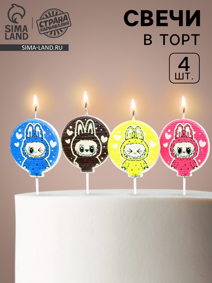 Свечи в торт на шпажке «Монстрик №2», 4 шт