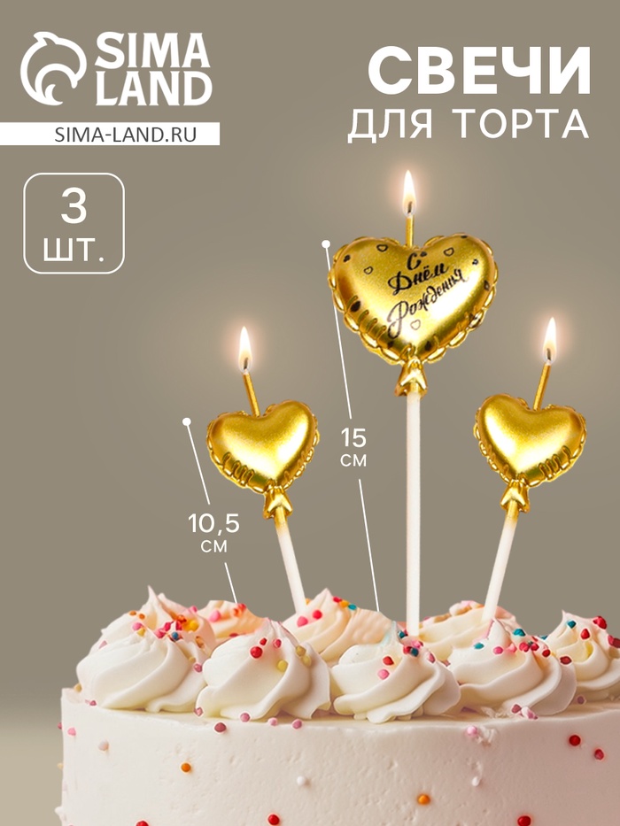 Свечи для торта, 3 шт. «Воздушный шарик. Сердце», золотые