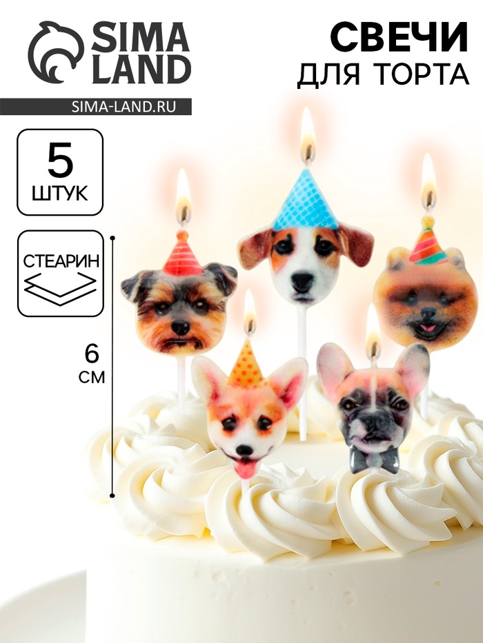 Свечи для торта «Собачки», 6 см, 5 шт.