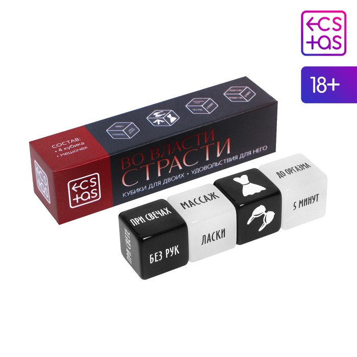 Кубики для пар «Во власти страсти. Удовольствие для него», 2 неоновых кубика, 2 пластиковых кубика, 18+