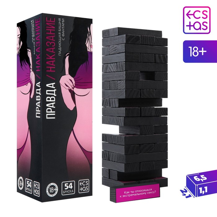 Дженга падающая башня «Правда/наказание» для двоих с фантами, 54 бруска, 18+