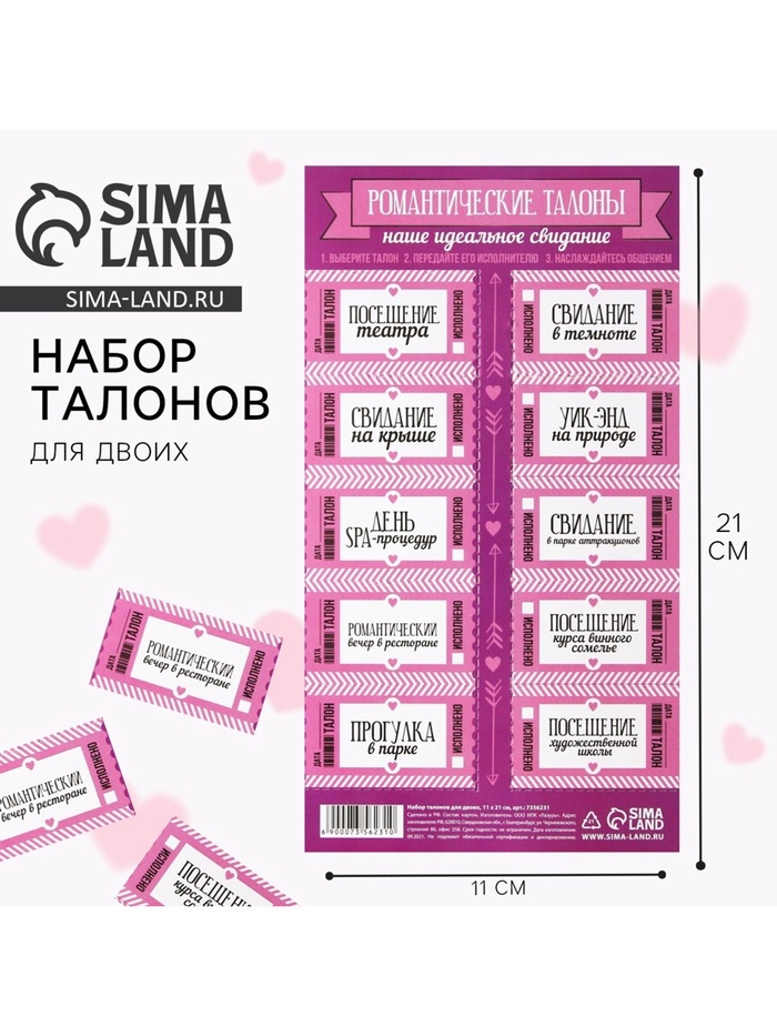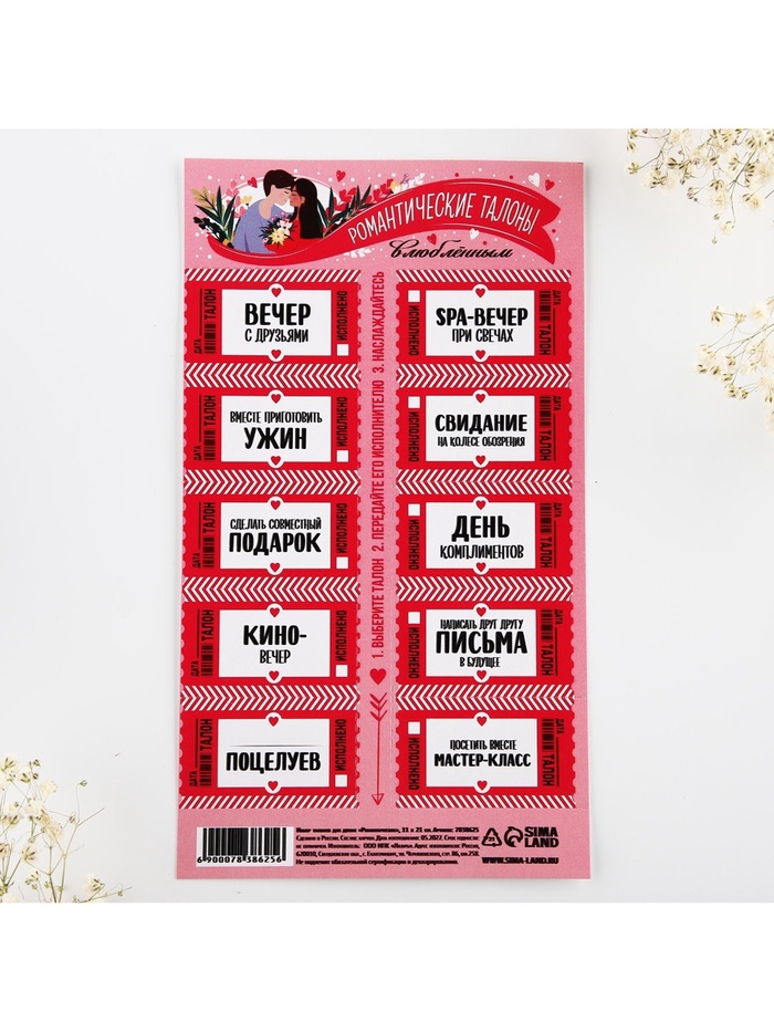 Набор талонов для двоих «Романтические», 10 талонов, 11 х 20 см