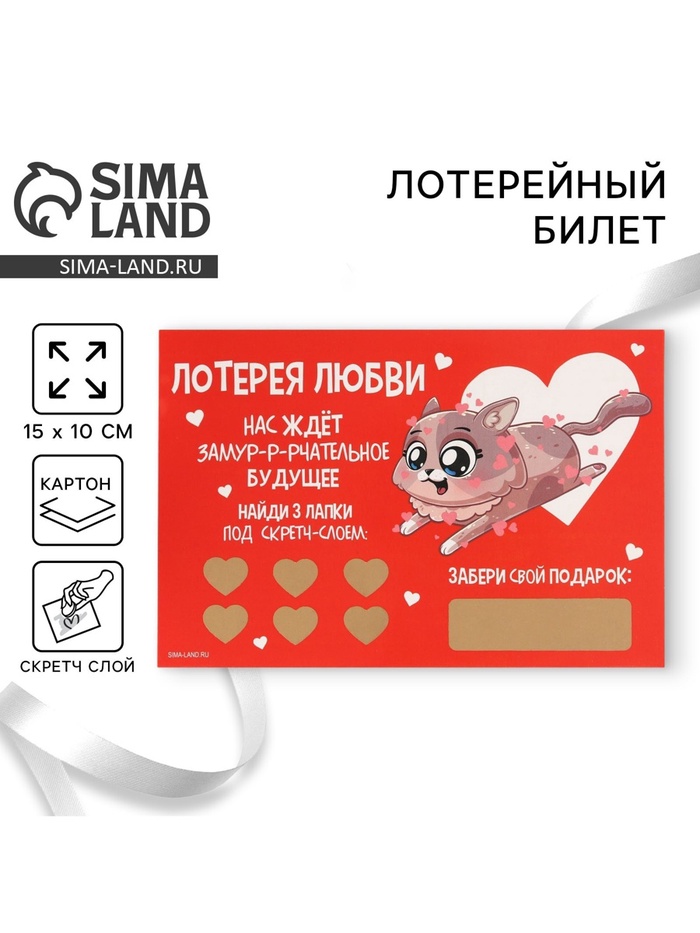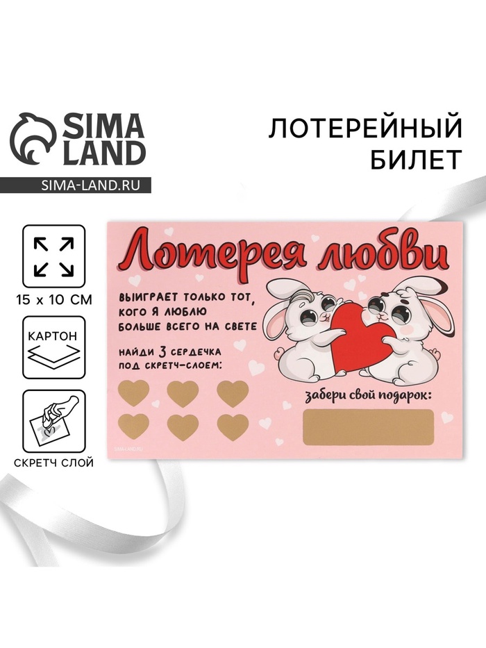 Открытка, лотерейный билет «Лотерея любви», 10 х 15 см.